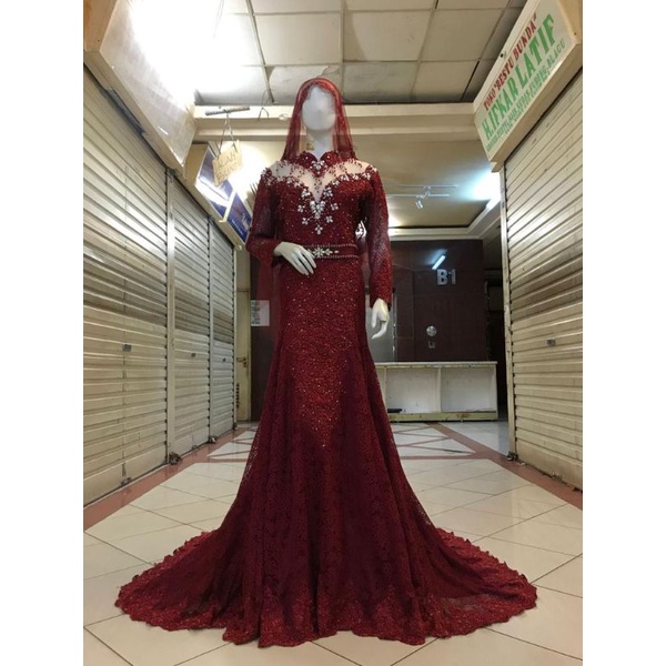 Gaun kebaya pengantin warna maroon. Md 029 free jas gaun baju pengantin wedding dress mermaid warna merah.